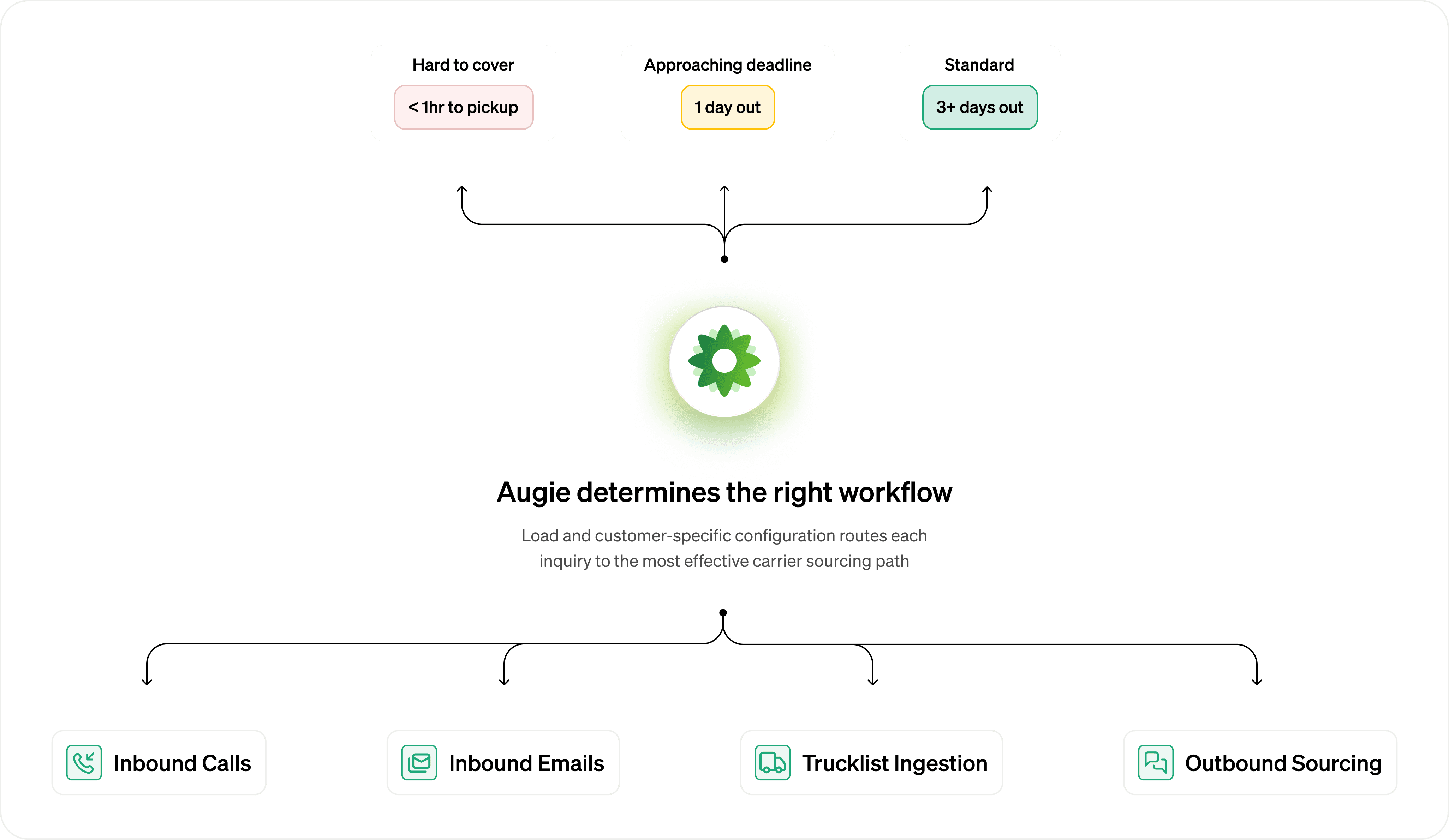 Augie handles every aspect of your carrier sales journey, from inbound inquiries to outbound sourcing, so your reps can focus on relationships, not repetitive tasks.