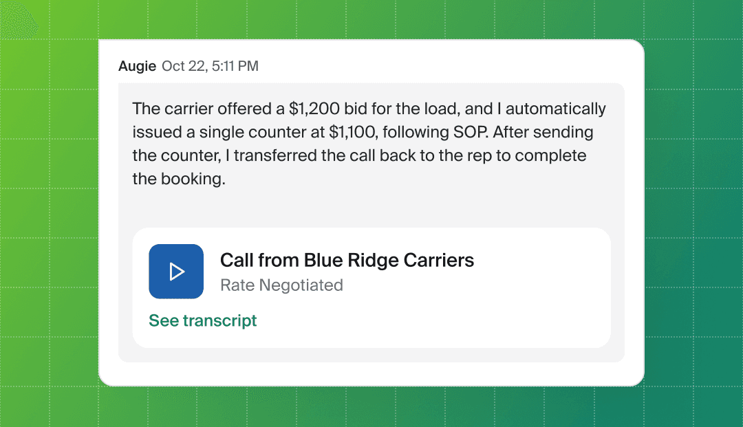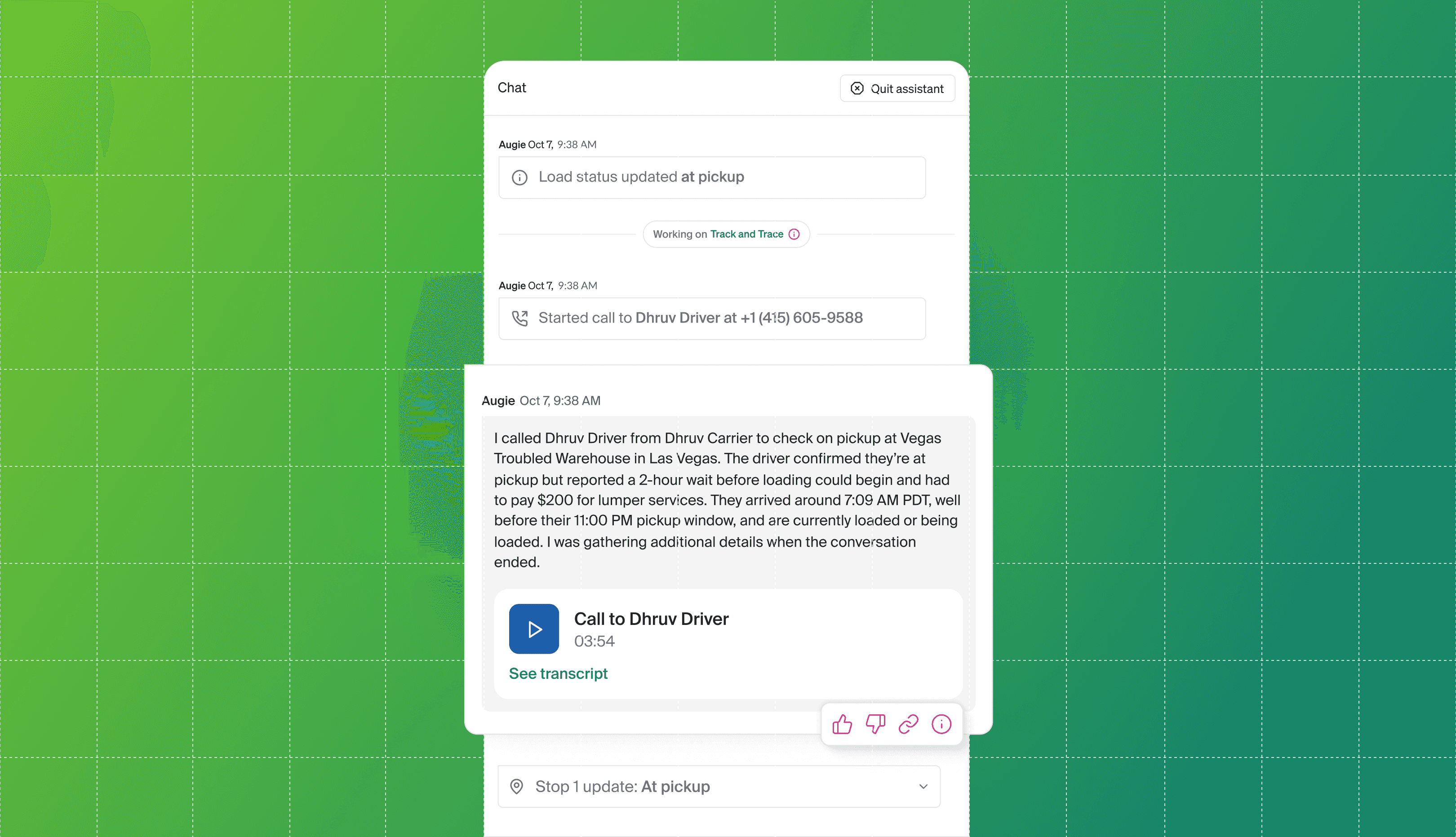 Efficiency: Reduce manual calls and emails by letting Augie fetch tracking updates automatically.