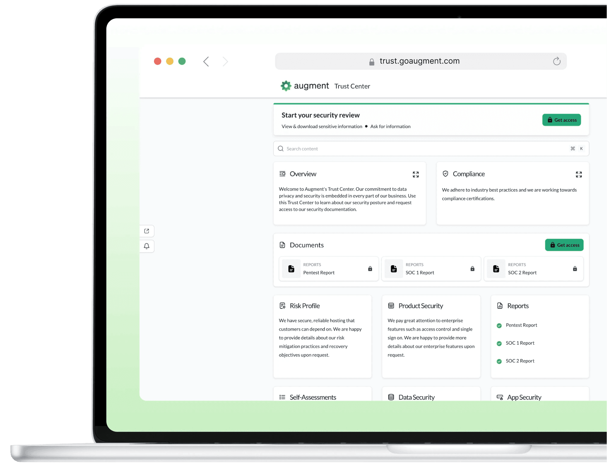 Trust is core to our mission at Augment. We are committed to the privacy and security of our customers’ data, processes, and knowledge.